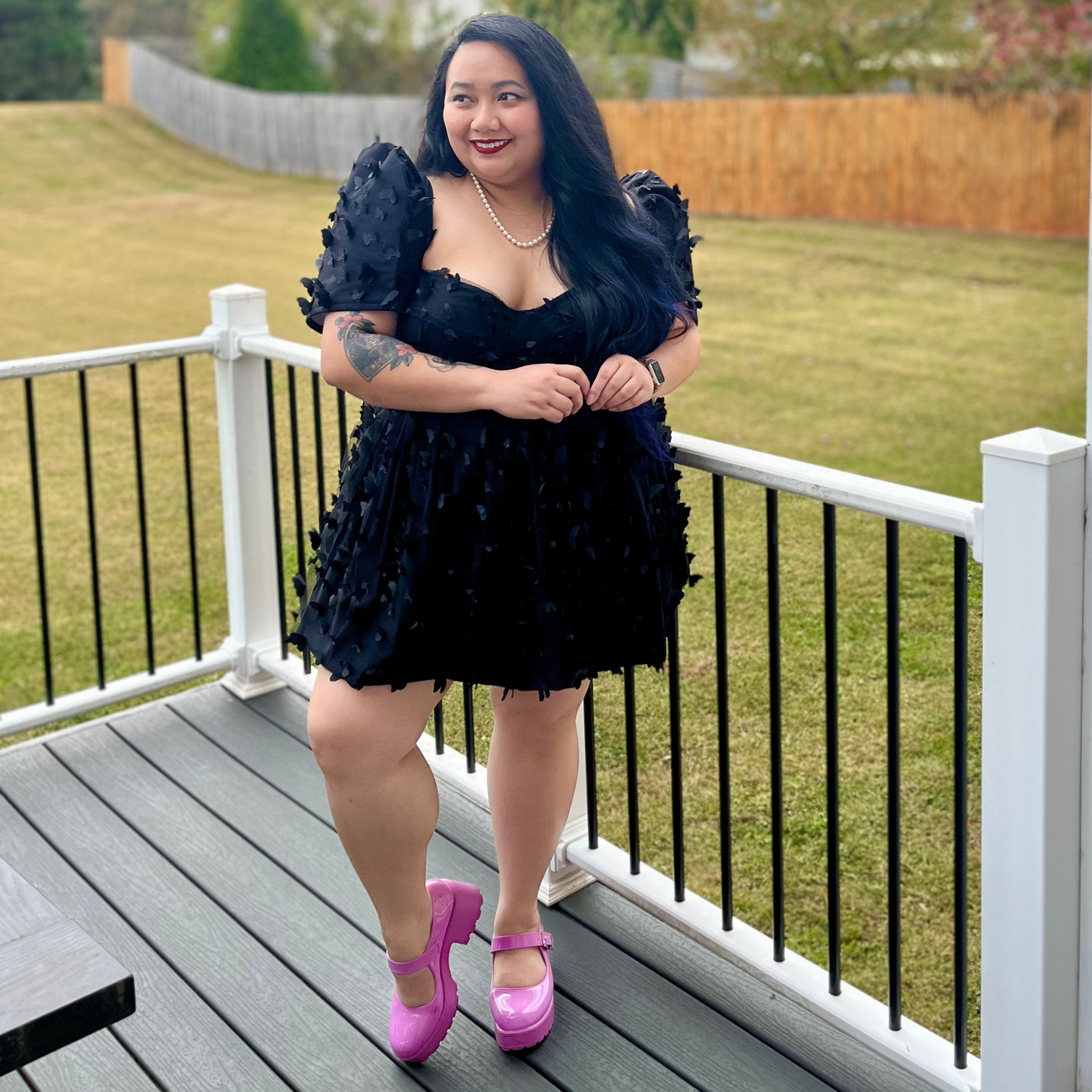 You'll want to wear The Betsey Mini Dress for every fancy occasion you have coming up! She's perfect for girls' night out, bachelorette parties, and date night. The whimsical 3D butterfly mesh overlay adds the perfect touch of whimsy to the sophisticated fitted bustier-style top and traditional Filipiniana sleeves. The mini skirt keeps the vibe fun and sassy. Criss crossing straps on the upper back keep the sleeves up.